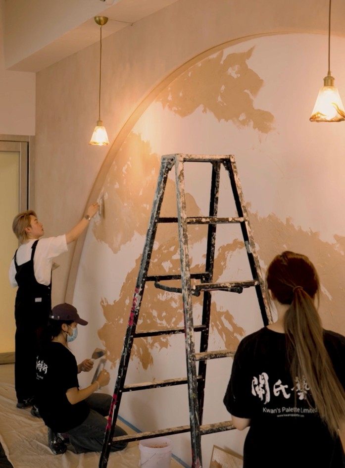 Kwan’s Palette has collaborated with leading organizations and institutions across industries, including the Hong Kong Jockey Club, Hong Kong Baptist University, Hang Seng Bank, UOB, and HSBC. The studio has also worked with prominent property developers such as New World Development, Kerry Properties, Chinachem Group, and Centralcon Properties, delivering bespoke artworks and textured surface solutions tailored to each project.